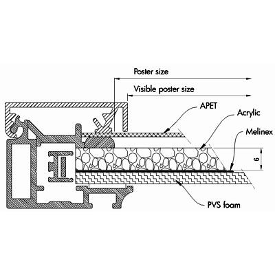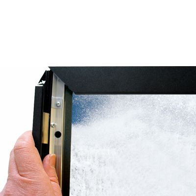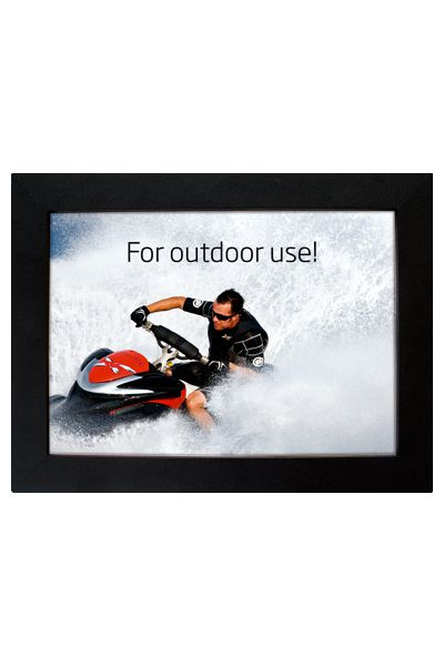 Einseitiger LED-Leuchtrahmen mit einem glänzenden Licht - für den Innen- und Außenbereich. 12 V Transformator. 33 mm Snap-Profil, schwarzlackiert mit Strukturlack. Ecken auf Gehrung. Einfach zu montieren und der Motivwechsel ist leicht.  Der LED-Leuchtrahmen kann vertikal und horizontal montiert werden.